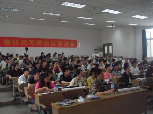 叶邦角教授做了题为《追求卓越》的报告,对物理学院的科研条件、师资力量、科研成果、校园生活、学生待遇、出国、就业等学生关心的问题,做了详细的介绍。