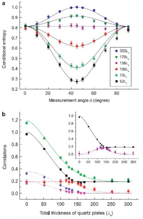 另一方面,尽管量子关联与经典关联越来越热门,现实情况是仅仅是对量子关联的定义就有几种,并没有得到一种统一的公认的度量方式。我们巧妙地克服了以上难题,在世界上率先完成了量子关联和经典关联在噪声环境下的演化的实验研究,取得了许多意想不到的成果。