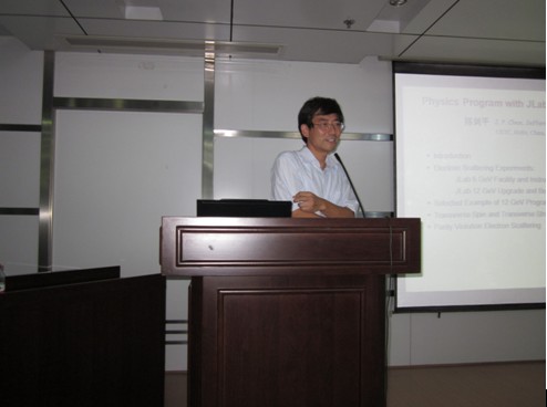 陈剑平博士分别于8月3日下午在近代物理系和8月4日上午在合肥同步辐射国家实验室做学术报告。详细介绍了JLab的现状和能量升级的计划。Jefferson实验室加速器能量将升级为12GeV,要建造新的探测器。陈剑平博士迫切希望与科大合作,在探测器和物理分析两方面做出贡献。中心师生对此很有兴趣。双方就如何开展卓有成效的合作,争取更多支持进行了深入的讨论。