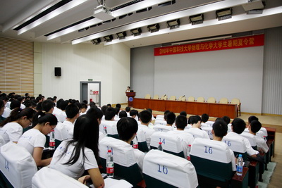 7月18日上午,由中国科大研究生院主办,物理学院、化学学院、合肥微尺度物质科学国家实验室联合承办的“中国科大首届物理化学暑期夏令营” 开营仪式在我校理化大楼东三学术会议厅举行。来自全国数十所著名大学物理化学学科的167名大三学生参加了开营仪式。开营仪式由物理学院分党委书记、副院长叶邦角教授主持。我校副校长张淑林出席开营仪式并致辞。