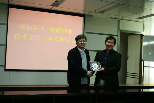 朱长飞副校长对中海油服董伟良一行表示欢迎,他向客人介绍了科大的发展,以及在学科建设、科学研究以及人才培养等方面的总体情况,特别介绍了科大在石油天然气领域的研究力量和所取得的丰硕成果。他强调,科大历来重视科学与技术的结合,坚持科学上瞄准最前沿、技术上瞄准高尖专的科研教学理念,在前沿学科建设和科技领军型人才培养等方面具有丰富的经验和强大的优势。目前,科大正在积极探索和部署结合国家重大战略需求而进行学科平台建设,朱长飞表示,科大与中海油服有着良好的合作基础和技术积累,他希望双方能够进一步深入探讨有关联合实验室建设、学科建设、高新前沿技术研发等方面的合作,为国家经济建设和社会发展做出贡献。 董伟良对科大的热情接待表示感谢,他表示中国科学技术大学是国内著名的高等学府,有着强大的科研实力和优秀的教师学生资源,取得了许多世界级的科研成果,并为国家和社会培养了大量优秀人才,他为科大所取的的成绩表示钦佩。董伟良介绍了中海油服的公司发展历史、业务板块的划分以及公司未来中长期的发展规划等。他表示,中海油服要发展成为国际一流的大型石油服务公司,必须要坚定不移地走自主研发的道路,要进行联合、集成式创新,就必须要联合科研院校的力量,与高校的科研和学科建设结合起来,从而围绕石油能源领域,形成一大批原创、尖端、核心的产品和技术。他表示,中科大与中海油服有着近十年的合作,中科大的研究成果为中海油服的技术发展做出了重要贡献,双方应该进一步探讨新的长远的合作方式和模式,推进联合科研平台建设,从而汇聚研究方向、吸引研究人才,将企业的发展与学校的科研和人才培养密切结合。