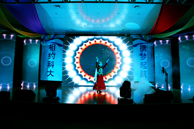 随后,表演唱《you raise me up》将所有人从舒缓中拉进欢快,短剧《孔雀东南飞》又在凄凉唯美中幽默频现,令观众时而落泪时而捧腹;集体舞《最炫民族风》则动感十足,整个礼堂在急速、劲爆的节奏中呼声如潮。