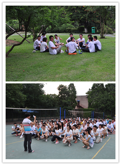 下午,营员们由志愿者带领,分批前往微尺度国家物质科学实验室和理化大楼参观,师兄师姐们的细心讲解、一台台精密仪器的展示,让营员们目不暇接,尽情畅想着进入科大后的美好图景。由于实验室空间狭小,在走廊等候参观的同学就抓紧时间讨教、取经,向师兄师姐提出科研和生活上的问题。身处未来工作和学习的地方,了解科研设施的同时,也让大家对科大多了一份归属感。 志愿者 你们最辛苦! 夏令营的几日,走在校园里,随处可见志愿者们忙碌的身影。这支由32名研一学生组成的队伍成立于两个月前,他们全程安排着营员们的住宿、参观、出行,是营员们在科大的向导,也是营员眼中科大形象的完美代表。 “师兄师姐们最辛苦!”这是营员们一致的心声。讲座时,为营员送上饮水;面试前,帮营员联系老师。许多志愿者每天工作超过12个小时,几乎每天半夜才拖着疲惫的身躯回到宿舍。他们中不少是第一届时的营员,这次主动报名参加了志愿服务工作。这种夏令营精神的传承,也必将铭记在营员们心中,一届届延续下去。 休闲时光 我们的生活很精彩 傍晚的校园,暮色四合,结束了一天紧凑的学术盛宴,营员们来到运动场,由学校心理中心的老师们带领进行素质拓展训练,时空之门、信任背摔、依存共渡、穿越沼泽....在老师们的指导下,大家分为八组,全身心地投入其中。沼泽的穿越者们还在为如何搭建浮桥集思广益,背摔这边,大家的臂膀已经成功接住了第一位勇敢的伙伴,而场地的另一端,时空之门的同学在为又一次刷新了记录欢呼.....游戏结束,齐心协力赢得的胜利,让大家围坐着畅谈训练体验,分享着团结协作的喜悦。