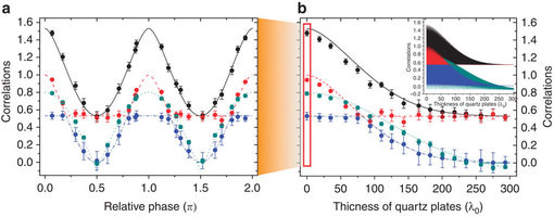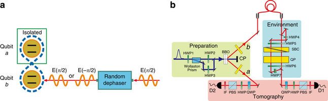 李传锋教授研究组利用自发参量下转换过程制备高纯度的两光子贝尔对角态。利用其中一个光子的路径自由度模拟随机的经典场,通过不区分光子路径的测量方式实现特定的经典化过程。通过利用巴比涅补偿器精密调节不同路径上的相位,从而得到量子关联的时间演化特性。这项工作使得在无反作用的经典环境中对量子关联资源的调控成为可能,能够进一步简化量子关联恢复所需要的条件,并且为研究 量子关联在经典环境中的恢复提供了一种新思路。