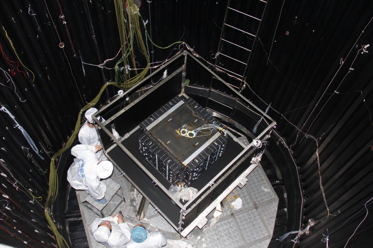暗物质卫星是中科院空间科学先导专项中首批确定的五颗科学实验卫星之一,也是我国科学卫星系列首发星,其科学目标为通过高空间分辨、宽能谱段观测高能电子和伽马射线寻找和研究暗物质粒子,并在宇宙射线起源和伽马射线天文学方面取得重大进展。该卫星有效载荷由塑闪阵列探测器、硅阵列探测器、BGO量能器、中子探测器等四个分系统组成,可实现迄今为止最宽的观测能段范围和最优的能量分辨率,性能指标优于国际同类探测装置。5月28日,暗物质卫星有效载荷成功完成联试,顺利交付卫星总体,为确保卫星今年年底如期发射奠定了基础。中央电视台、人民日报、中国科学报等重要媒体对此进行了报道,引起了社会广泛关注。