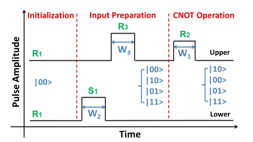 该研究组经过两年的摸索和积累,利用标准半导体微纳加工工艺设计制备了多种半导体强耦合电控量子点结构,使两量子比特间的耦合强度超过100微电子伏特;并不断改进量子比特逻辑操控中的高频脉冲信号的精确控制等问题,使得脉冲序列间的精度控制在皮秒量级,并最终实现了两个电荷量子比特的控制非门,其操控最短在200皮秒以内完成。相对于国际上目前电子自旋两量子比特的最高水平,新的半导体两量子比特的操控速度提高了数百倍。