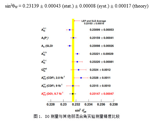 我院近代物理系杨思奇、韩良,在费米实验室D0实验中,完成轻夸克相关弱混合角sin2θW世界最精确测量,物理结果发表在Phys. Rev. Lett. 115, 041801(2015)上。