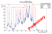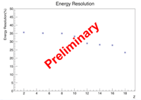 其中,重离子束标定实验利用40GeV/u的40Ar打靶产生的次级离子研究DAMPE谱仪对高能离子束的性能响应,结果显示其对高能离子束的能量分辨率达到约30%(图2),优于目前国际上所有在轨粒子探测谱仪水平,并首次获得了BGO晶体对40GeV/u能区高能离子的荧光猝灭系数(图3),测量结果填补了40GeV/u能区实验数据的空白,对未来在轨测量数据修正具有重要意义。原初质子束标定实验则通过长时间累积100万原初质子事件研究DAMPE谱议对电子/质子的区分能力,其中BGO量能器的电子/质子鉴别结果仍在分析进行中。