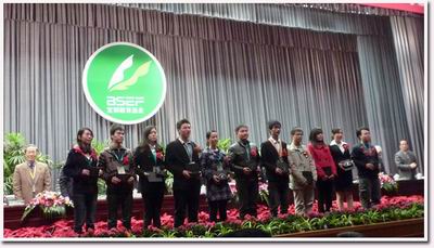 2011年度宝钢教育奖评选结果于近日揭晓,我院陈晨同学、汪晓莲教授分获宝钢优秀学生奖、优秀教师奖。颁奖典礼于11月24日下午在宝钢人才开发院举行,我校党委副书记鹿明等参加了颁奖典礼。宝钢集团有限公司董事长徐乐江亲自为获奖同学颁发了证书。