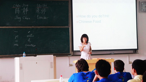 在汉语课上,我校教师将传统节日、美食等中国文化融入日常汉语的教学中,国外营员用刚学会的汉语进行日常交流,课后还饶有兴趣地学习新的词汇。