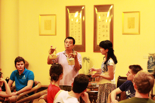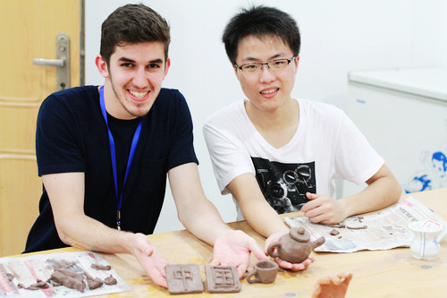 7月2日与4日晚,我校周先稠老师还分别给营员们上了茶艺与陶艺课。周老师通过阐述他对茶叶和陶瓷艺术的理解,向营员们介绍了中国的传统文化以及对现在社会的认识和思考。营员们感受到了中国文化的独特魅力,对中国这个古老而又现代的国度有了更深刻的认识。