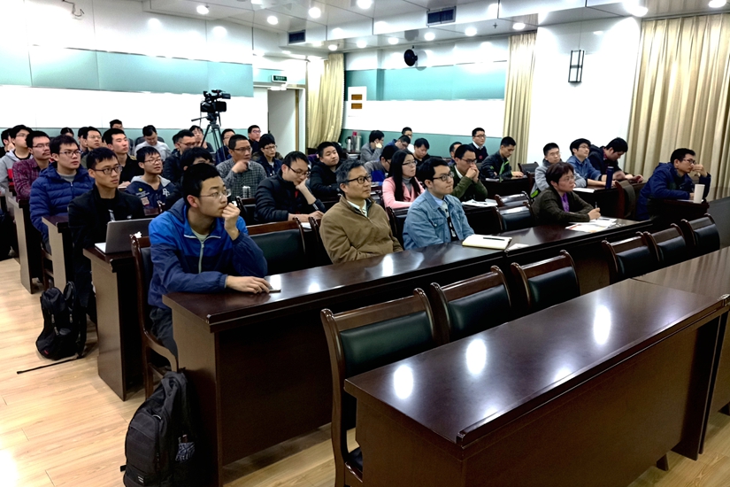 汪子丹教授首先感谢母校对他的培养并对同学们给予鼓励,然后从回顾他研究拓扑的背景开始了整场报告, 介绍了拓扑的一般概念,拓扑与对称性的联系和金属的拓扑理论。背景介绍之后,汪老师详细介绍具有二维PT(C)对称性的半金属理论,以及该理论在超导量子线路(Superconducting Quantum Circuits)上实验实现这个理论能谱的结果. 通过调节相关参数。 实验演示了能带被拓扑保护具有PT对称性的现象和从拓扑gapless半金属到绝缘体的过程, 验证了理论的正确性。 汪子丹教授在最后还谈到了外尔对狄拉克方程的理解和其中的拓扑性质, 以数学和实验在物理学中的作用。