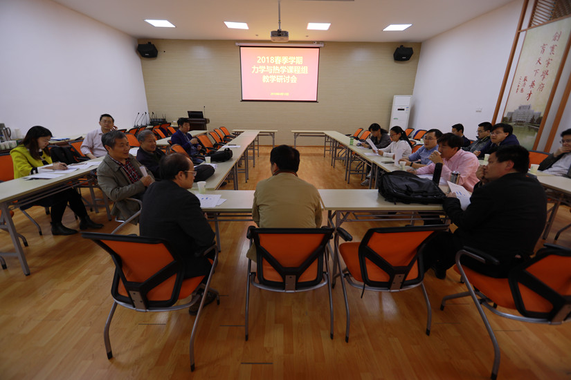 2018年4月12日下午,物理学院力学课程组与热学课程组联合召开了教学研讨会,二十多名课程组老师参加了会议,会议由力学课程组组长刘斌教授和热学课程组组长朱晓东教授共同支持。
