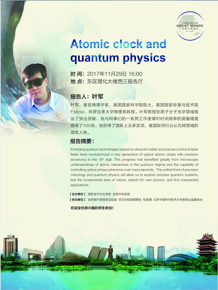 11月29日“大师讲坛”报告《Atomic Clock and Quantum Physics》