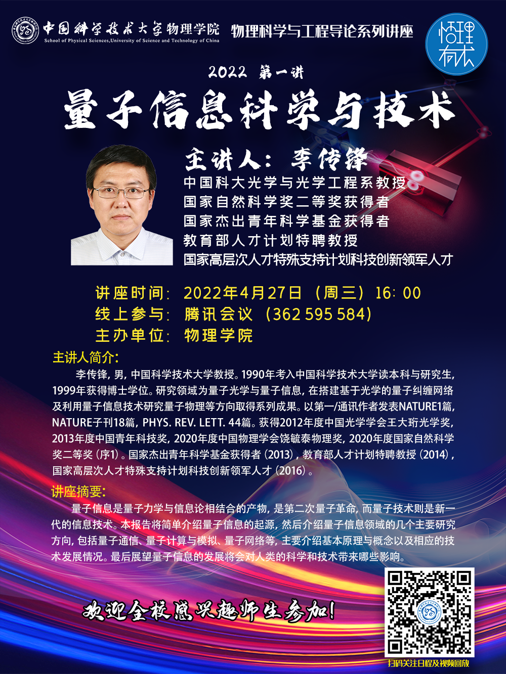 报 告 人:李传锋 教授(中国科大光学与光学工程系)