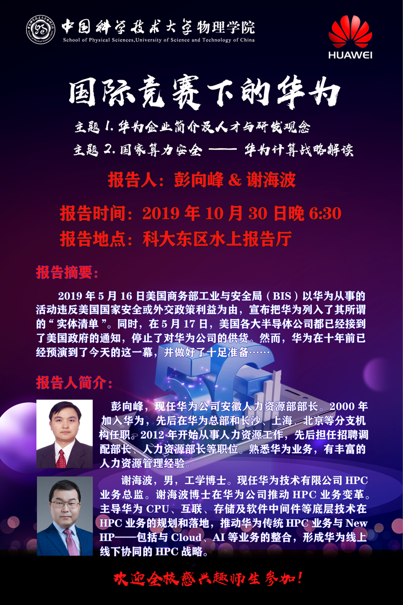 谢海波,男,工学博士。现任华为技术有限公司HPC业务总监。谢海波博士在华为公司推动HPC业务变革。主导华为CPU、互联、存储及软件中间件等底层技术在HPC业务的规划和落地,推动华为传统HPC业务与New HPC---包括与Cloud、AI等业务的整合,形成华为线上线下协同的HPC战略。