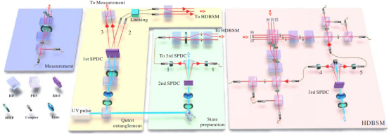 为了实现高维量子通信,李传锋、柳必恒等人从2016年开始采用光子的路径自由度编码,解决了路径比特的相干性问题[PRL 117, 220402 (2016)],制备出了高保真度的三维纠缠态[PRL 117, 170403(2016)];解决路径维度扩展问题,实现了32维量子纠缠态[PRL 125, 080503 (2020)];解决路径自由度的传输问题,实现了高维量子纠缠态在11公里光纤中的有效传输[Optica 7, 738 (2020)]等。研究组从2017年起开始了高维量子隐形传态的实验研究。然而理论研究表明,在线性光学体系中,必须采用辅助粒子才能实现高维量子隐形传态。