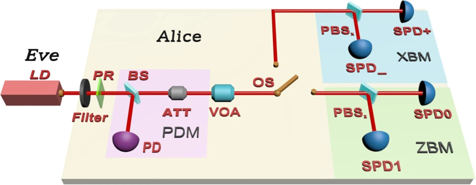 图1 包含分布监测模块的源无关量子随机数发生器实验方案图