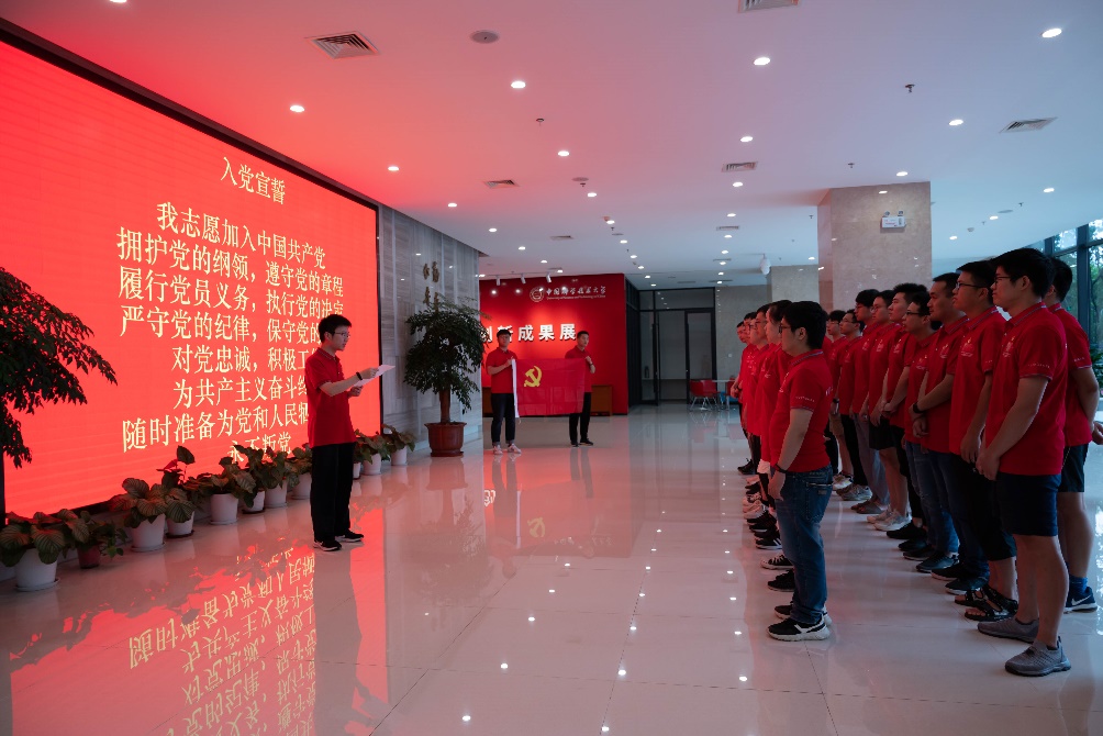 面向党旗,所有党员同志庄严宣誓:“我志愿加入中国共产党,拥护党的纲领,遵守党的章程,履行党员义务,执行党的决定,严守党的纪律,保守党的秘密,对党忠诚,积极工作,为共产主义奋斗终身,随时准备为党和人民牺牲一切,永不叛党。”