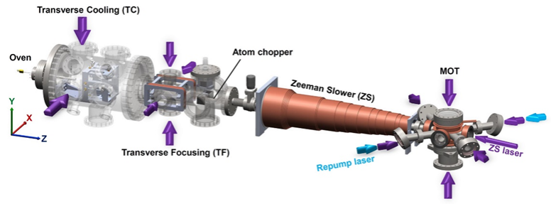 在本项工作中,研究人员首先用化学方法从岩石、骨头、海水样品中提取出约80毫克的金属钙,装入原子炉加热产生原子束流。再利用基于冷原子物理的冷却、聚焦、减速、磁光阱等各种激光操控方法将钙-41原子一个一个地从束流中俘获。通过测量被俘原子放出的荧光实现对单个钙-41原子的计数。本项工作利用原子阱的超高选择性排除了其它同位素、元素及分子的干扰,在10-16同位素丰度水平实现了定量分析,测量精度达12%,并将探测极限压至10-17量级。接下来研究人员计划与国内外科学家开展广泛合作,共同探索钙-41定年在地球科学与考古学领域的应用。