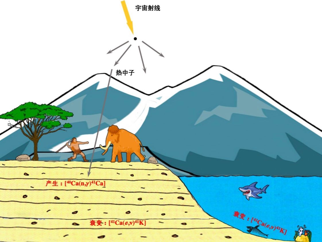 图1.钙-41同位素由宇宙射线诱导产生,有望应用于冰川与古生物等自然界样品的定年研究