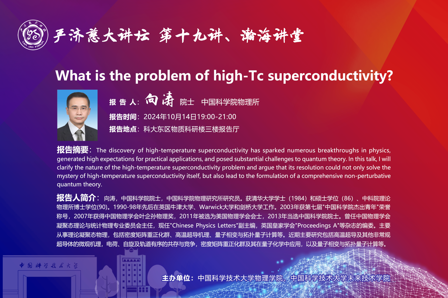 报 告 人:向涛 院士(中国科学院物理研究所)