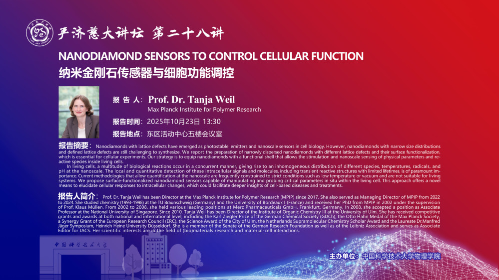 报告题目:《纳米金刚石传感器与细胞功能调控》