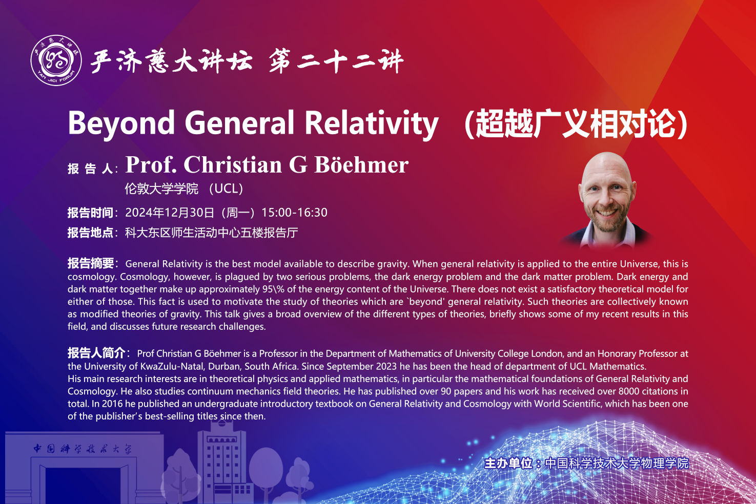 12月30日【严济慈大讲坛】第二十二讲《超越广义相对论》 [2024-12-31]