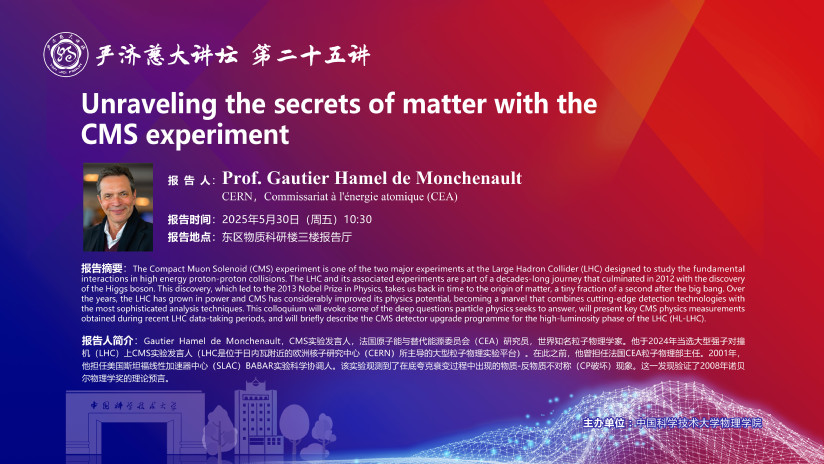 报告题目:《Unraveling the secrets of matter with the CMS experiment》