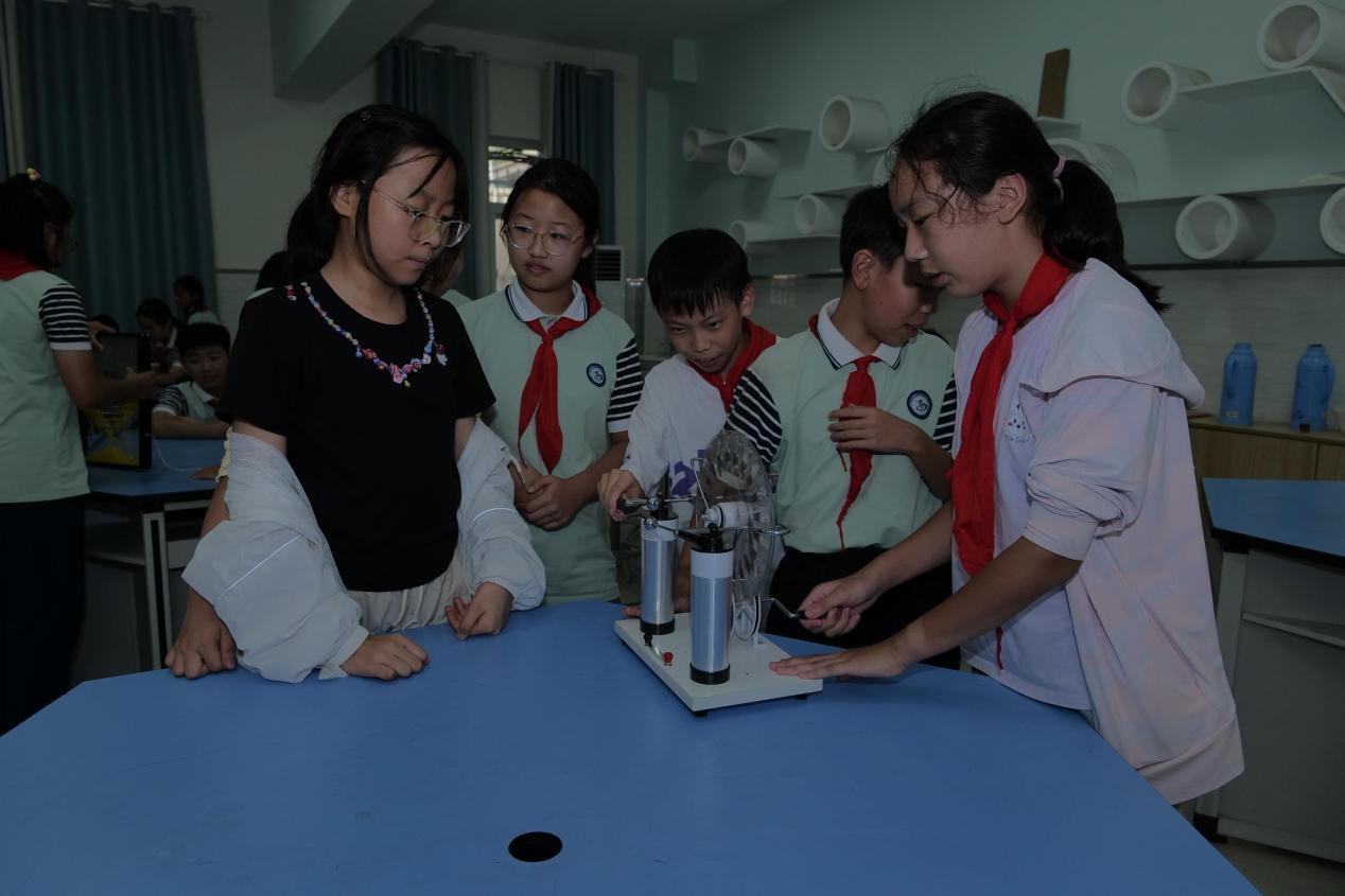 而在物理实验科普环节中,物理学院的学子带领孩子们开展与宣讲主题相呼应的科普实验。通过手摇发电机实验,感受击穿空气现象;通过高尔顿板实验,感受数学概率之美;通过磁流体演示实验,感受电磁之力。每个班级的同学都展现出不菲的热情,在积极做实验的同时,不少同学还向宣讲团的成员提问,科学的种子早已生根发芽。