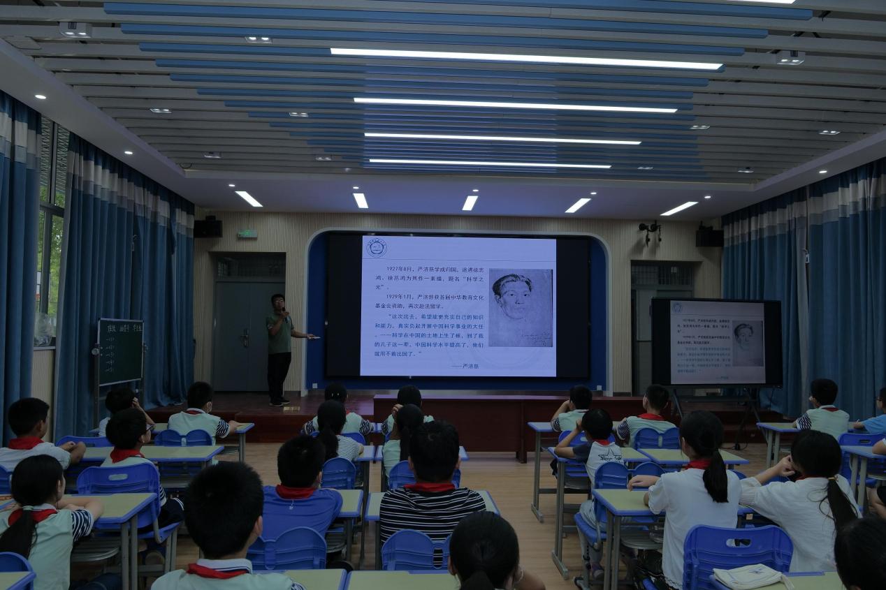 本次活动延续“一人一故事一视频”深度宣讲模式,8名团队成员分三个时段依次推进,每场聚焦一位科学家,配以5至10分钟科学家视频资料,并同步开展主题科普实验,实现宣讲与动手实践相结合。前两场宣讲以严济慈先生为主题,通过历史影像、情景再现和生动讲述,再现其与居里夫人的对话、参与建校筹备等事迹,引发学生强烈共鸣。第三场聚焦郭沫若先生对我国科技事业的贡献,从多角度展现科学家精神的时代内涵。