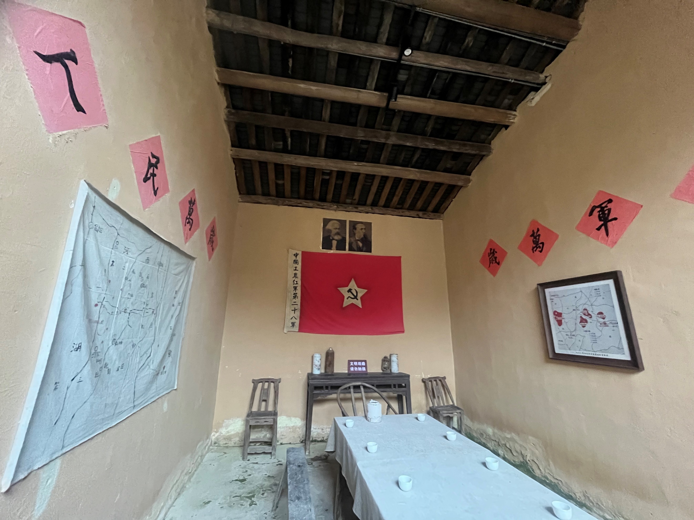 11月9日我们赴岳西县鹞落坪乡的聂家老屋继续参观学习。聂家老屋是中国工农红军第二十八军军政旧址是1935年至1937年红二十八军坚持鄂豫皖三年游击战争的大本营。在夯土墙的斑驳痕迹与青瓦的错落光影中,重温红二十八军在大别山的整容岁月,感悟跨越时空的革命精神与军民深情。这座坐东朝西的三合院静静矗立着,夯筑墙面上“红军是穷人的救星!”的红色标语依然醒目,无声诉说着那段战争年代的热血故事。老屋共13间房舍,如今已复原开放高敬亭卧室、红二十八军军部会议室、红军山林医院等多个场景,每一处陈设都承载着厚重历史。走出老屋,广场对面李先念同志亲笔题写的“向牺牲在大别山区的烈士们致敬!”纪念碑格外庄重,与老屋形成跨越时空的呼应。