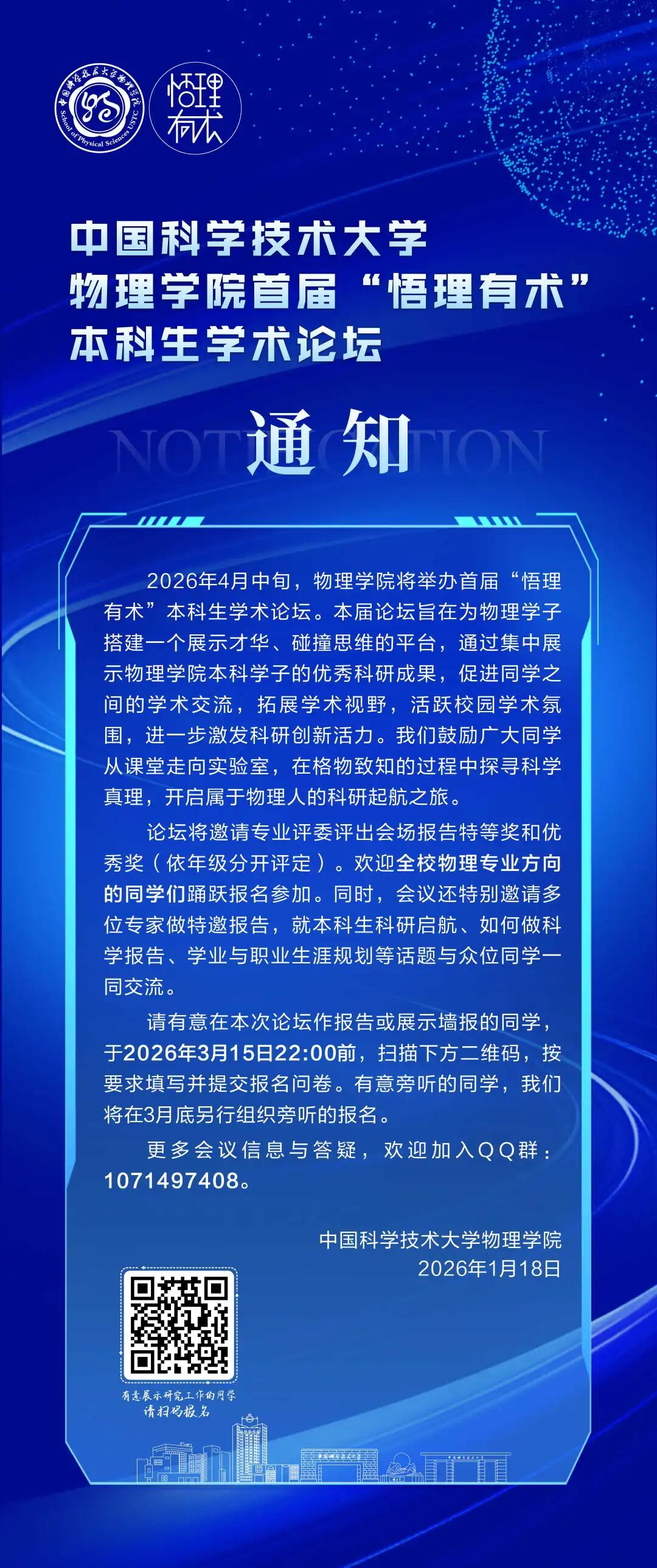 中国科学技术大学物理学院首届 "悟理有术"本科生学术论坛通知