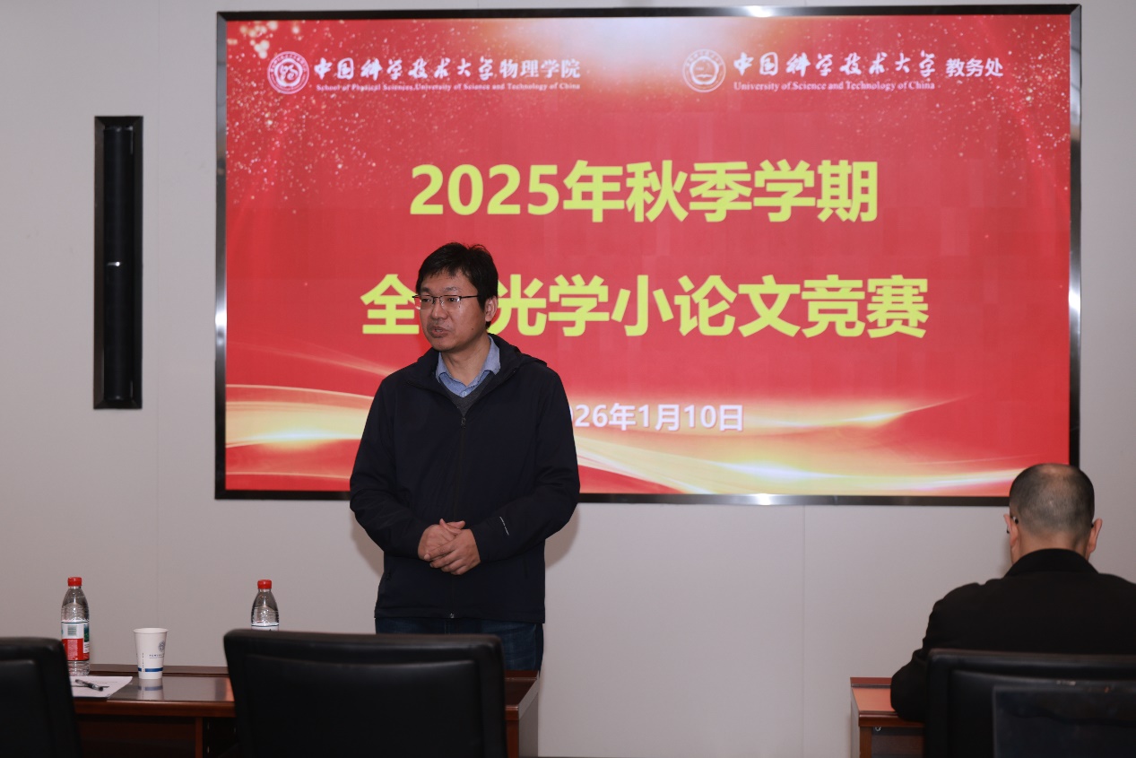 2026年1月10日上午,我校《光学》课程组在物质科研楼C楼404室顺利举办全校2025年秋季学期《光学》小论文竞赛活动。经班级评选,本学期共选拔出21组优秀作品参加全校的决赛。竞赛活动由课程组长王沛教授主持,物理学院副院长张永生教授开场致辞,课程组主讲老师王沛教授、鲁拥华教授、柳必恒教授、许金时教授、王安廷副教授、周宗权教授担任评委。